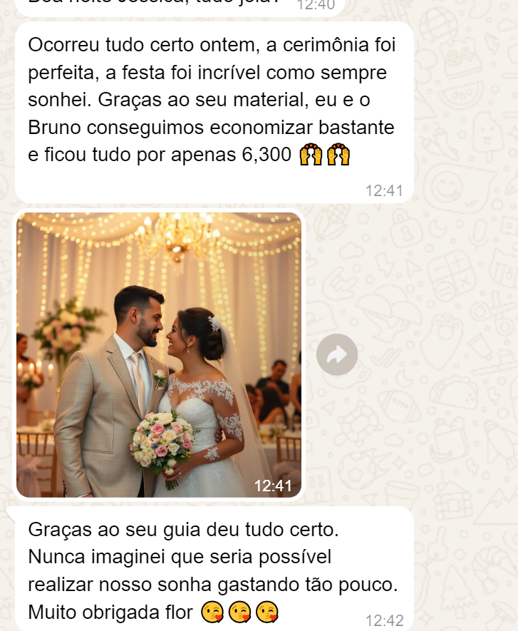 Esse é exatamente o MESMO processo que eu e minhas noivinhas usamos para fazer casamentos dos sonhos por menos de 7K reais.