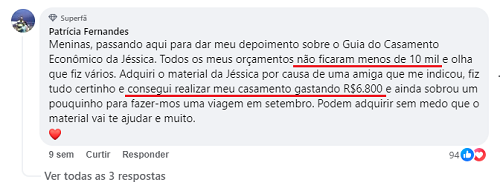 Temos vários depoimentos das noivinhas que adquiriram a primeira edição e economizaram muito. A primeira edição do Guia Detalhado do Casamento Econômico ajudou mais de 1987 pessoas a organizar e economizar no casamento. O conteúdo foi elaborado com base empírica e com muito estudo de qualidade. É um conteúdo validado e testado na prática por assessoras de casamento.